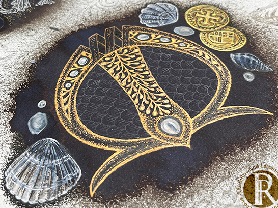 I combined the collaged papercut imagery with decorative Fraktur lettering and in the gold version below, I used gold paper and Finetec Gold Watercolour for added sparkle.