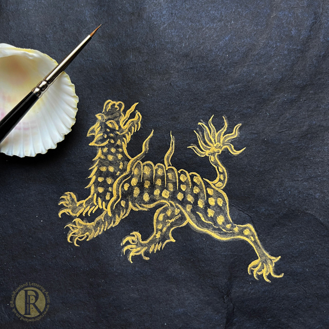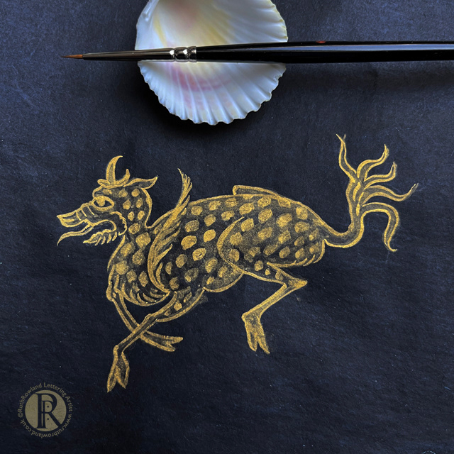 Part of my ongoing art practice is the continued study of traditional art techniques and with this in mind I booked a week-long course at the King's Foundation School of Traditional Arts to learn how to paint Persian mythical creatures with shell gold.